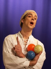 des Jongleurs und seiner Requisiten werden für das Auge in